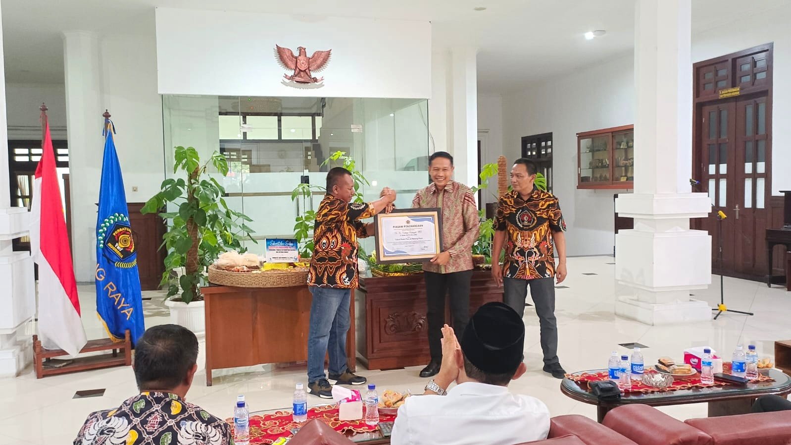 Wali Kota Malang, Wahyu Hidayat (tengah) saat menerima penghargaan dari Kementerian Hukum Republik Indonesia.