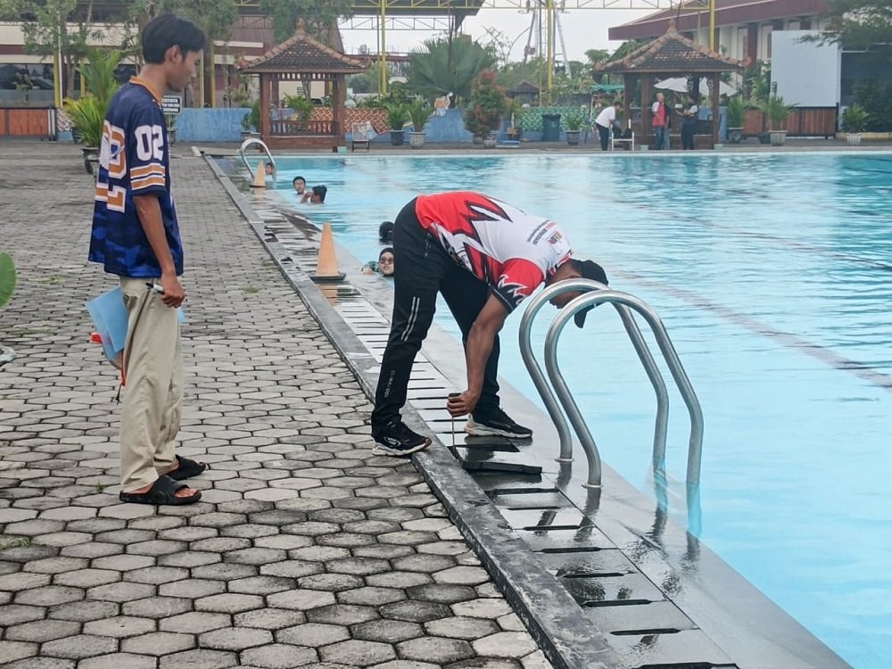 Untuk itu, pengelola Bonderland Waterpark melakukan proses verifikasi Standarisasi kolam renang yang dilakukan oleh tim Akuatik Kabupaten Malang.