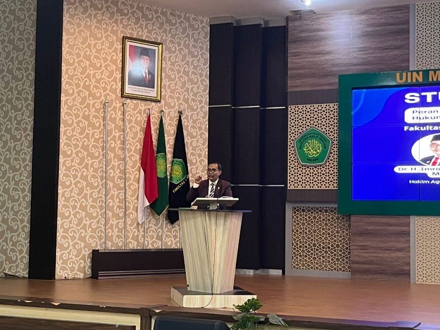Peweimalang.com, Kota Malang – Hakim Agung Mahkamah Agung (MA) Republik Indonesia (RI), Imron Rosyadi menegaskan bahwa hakim tidak bisa digantikan oleh Artificial Intelligence (AI). Hal ini ditegaskan saat menghadiri Studium General di Universitas Islam Negeri (UIN) Maulana Malik Ibrahim (Maliki) Malang, Senin (3/11/2025).