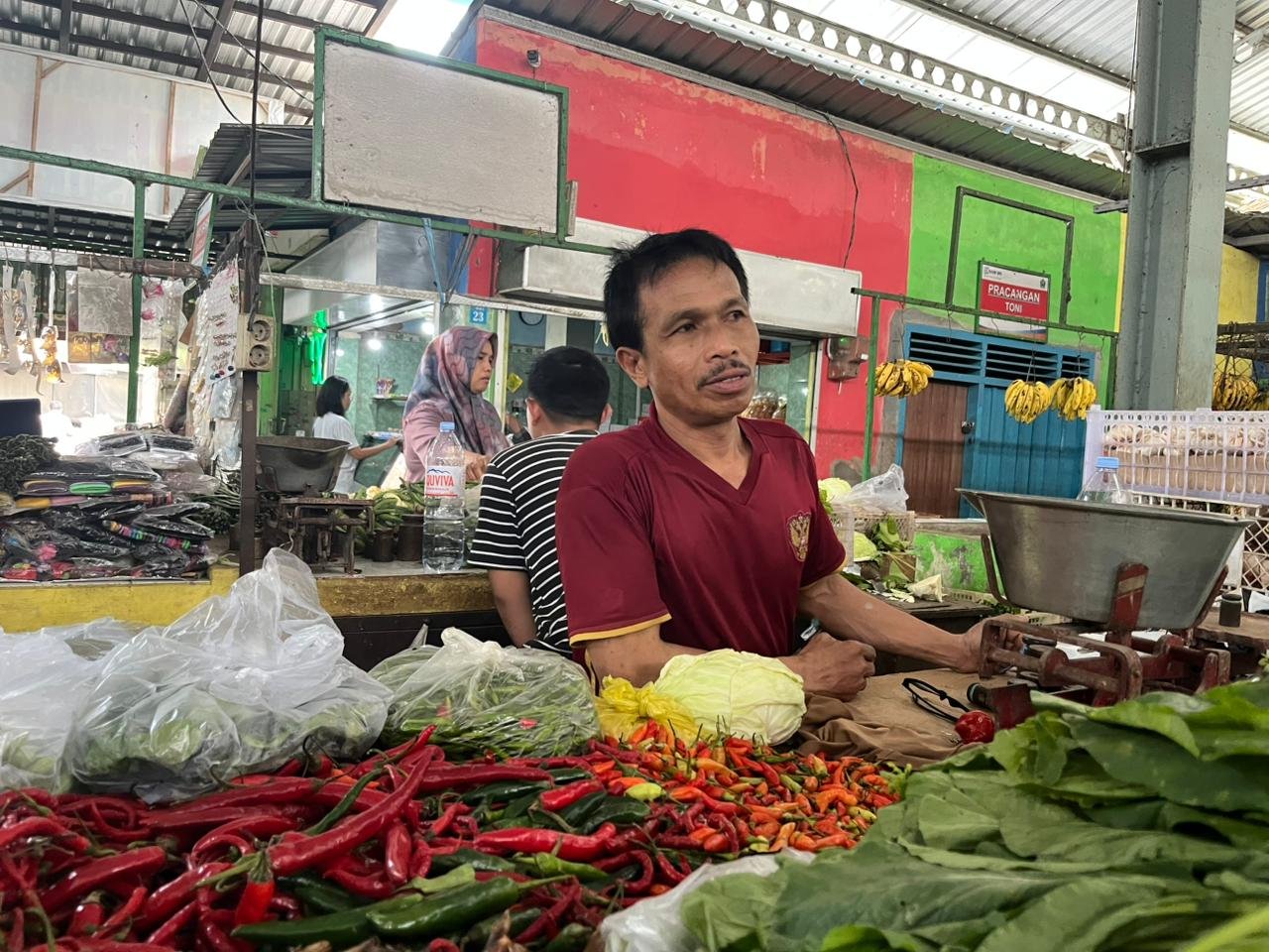 “Cabai keriting sama cabai besar yang naik, dari Rp. 55.000 – Rp. 60.000. Dua ini yang mahal,” jelas Nasir, salah satu pedagang sayur di Pasar Bunul, Minggu (12/10/2025).