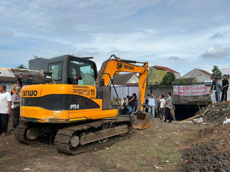 Proses negosiasi terjadi. Alat berat dari DPUPRPKP sudah disiapkan di balik dinding tersebut untuk melakukan pembongkaran lewat jalan Simpang Candi Panggung.