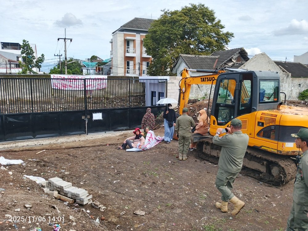 Proses pembongkaran dinding tersebut memanas, setelah tim gabungan yang terdiri dari Satpol-PP, Dishub, BPBD, Dinkes, dan DLH Kota Malang serta TNI-Polri dihadang ibu-ibu warga setempat, Kamis (6/11/2025).